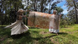 In the Blackwall Range of Ballina, textiles are colored with plant dyes made from eucalyptus leaves and dancing with nature.